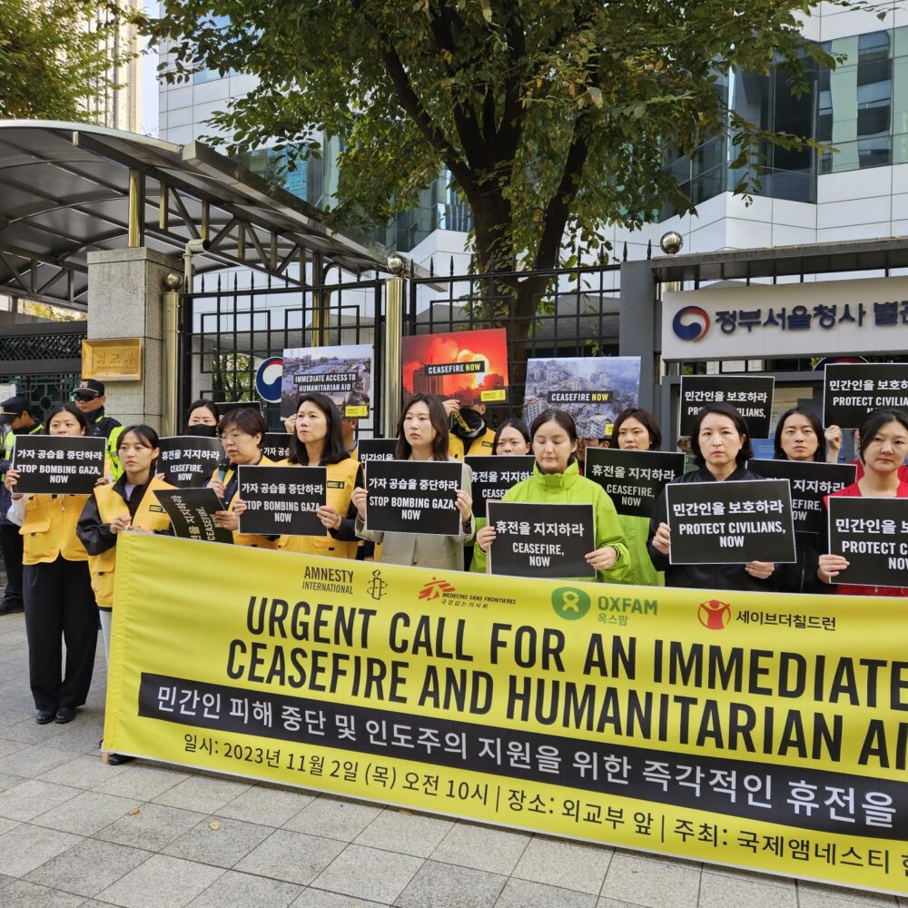 한국: 이스라엘/팔레스타인 점령지역의 즉각 휴전을 촉구하라