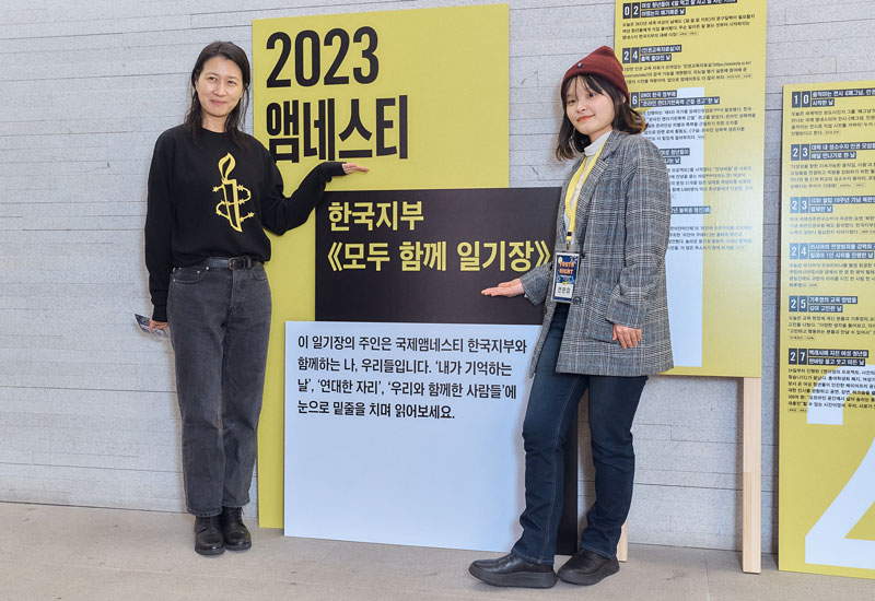 해당 세션을 담당했던 유스 대표단(1기) 박나연은 당시를 “많은 분들이 적극적으로 참여해 주셔서 정말 감사했어요. <모두 함께 일기장> 덕분에 앰네스티에 대해 더 자세히 알아갈 수 있어서 좋았다는 분도 계시고, 앰네스티가 이렇게 다양한 주제로 인권 활동을 하고 있다는 점에 새삼 놀라신 분도 계셨어요. 유스 나잇에 대해서도 많이 말씀해주셨는데요, ‘섬세하고 안전한 곳’, ‘사랑이 가득한 행사’와 같은 말들을 해주셨던 게 기억에 남아요”라고 떠올렸습니다.