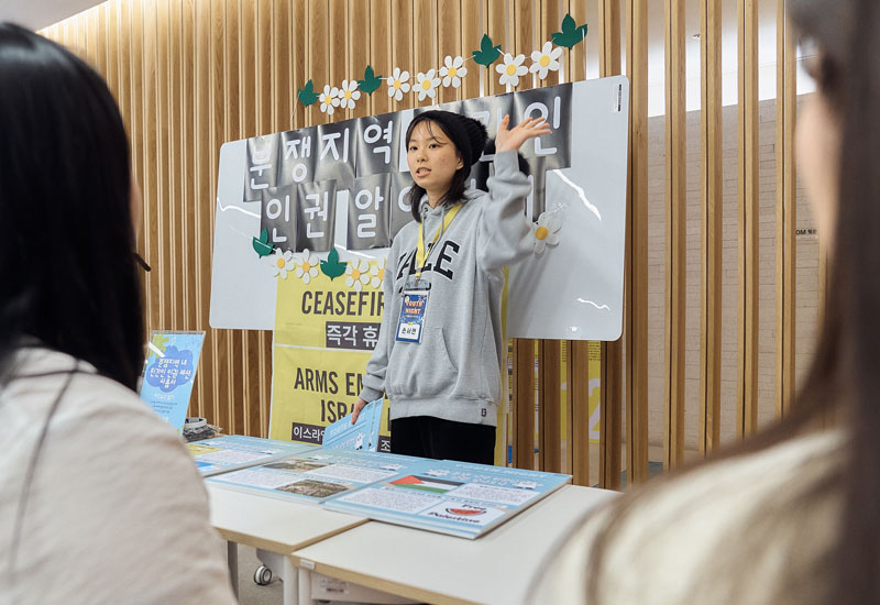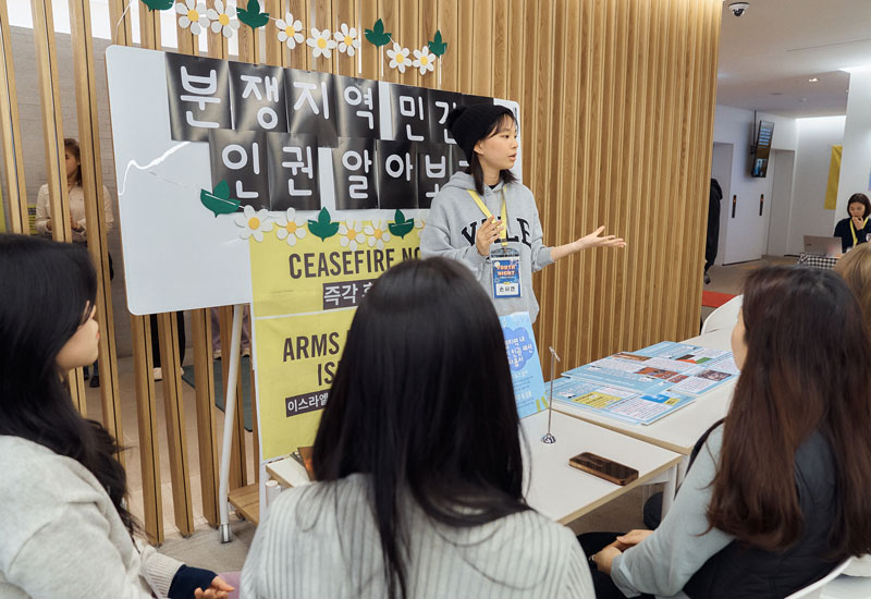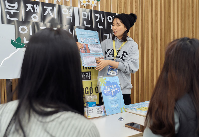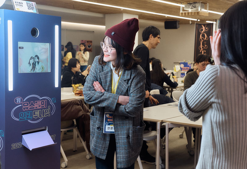 [분쟁지역 민간인 인권 알아보기] 세션에서는 이스라엘/팔레스타인 점령 지역 사례를 중심으로, 분쟁 지역 내의 인권 침해 상황들에 대해 설명하고, [유스들의 인권 투나잇] 세션에서는 이 시간을 오래 추억할 수 있는 포토부스를 운영했습니다. 참가자들은 ‘유스들이 모여 너무 좋았다.’, ‘친절하고 재미있게 활동을 소개해주셔서 감사하다.’, ‘너무나도 행복한 시간이었다.’, ‘이렇게 안심하고 올 수 있는 시간을 즐길 수 있어 기쁘다.’ 등의 소감을 전했습니다.