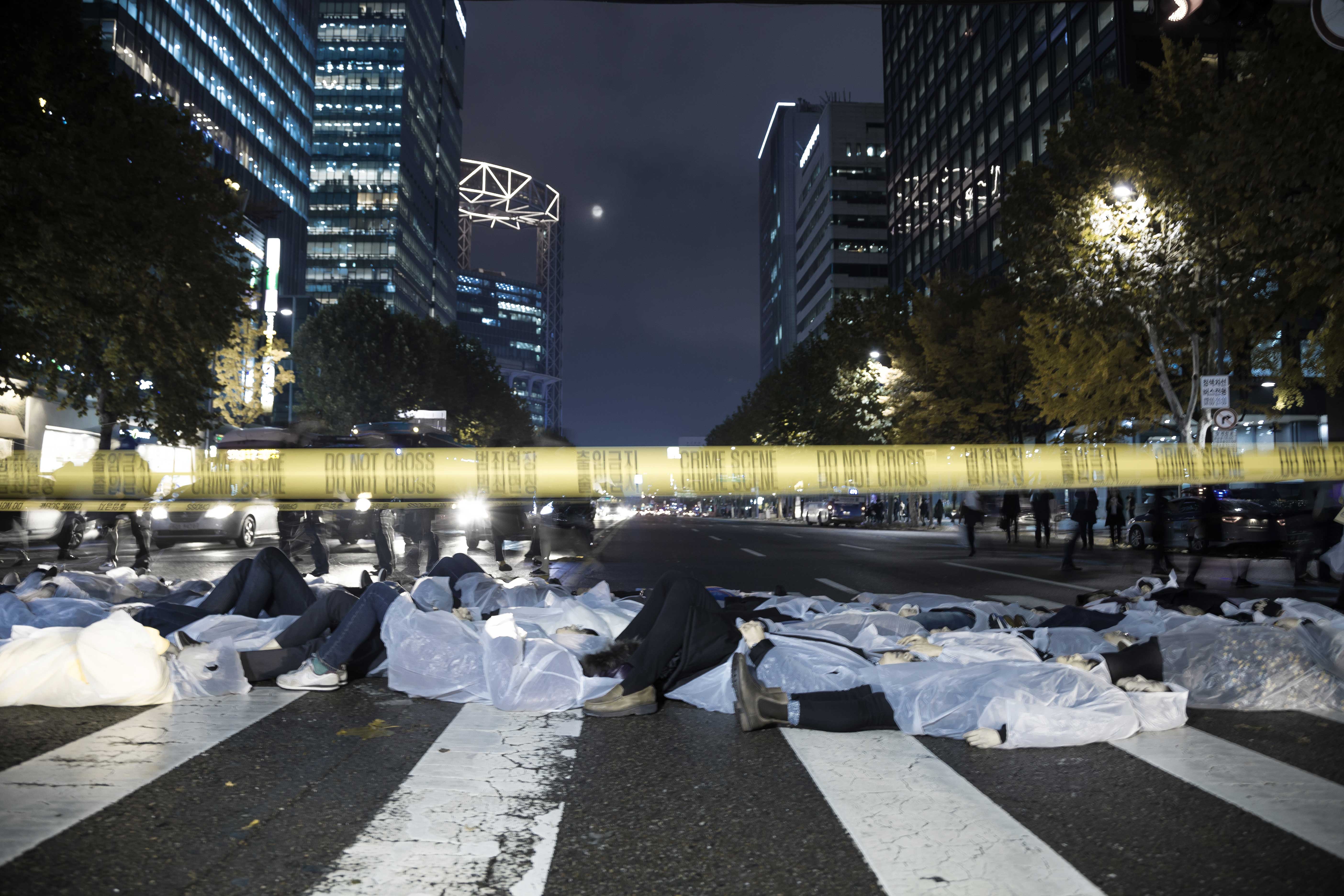 이어 김 사무처장은 “즉각 독립적이고 불편부당한 조사가 있어야 한다. 이번 사건의 책임자가 법의 심판을 받는 그날까지 행동하겠다는 마음을 모아 이 자리를 마련했다”고 이번 퍼포먼스의 취지를 밝혔다.