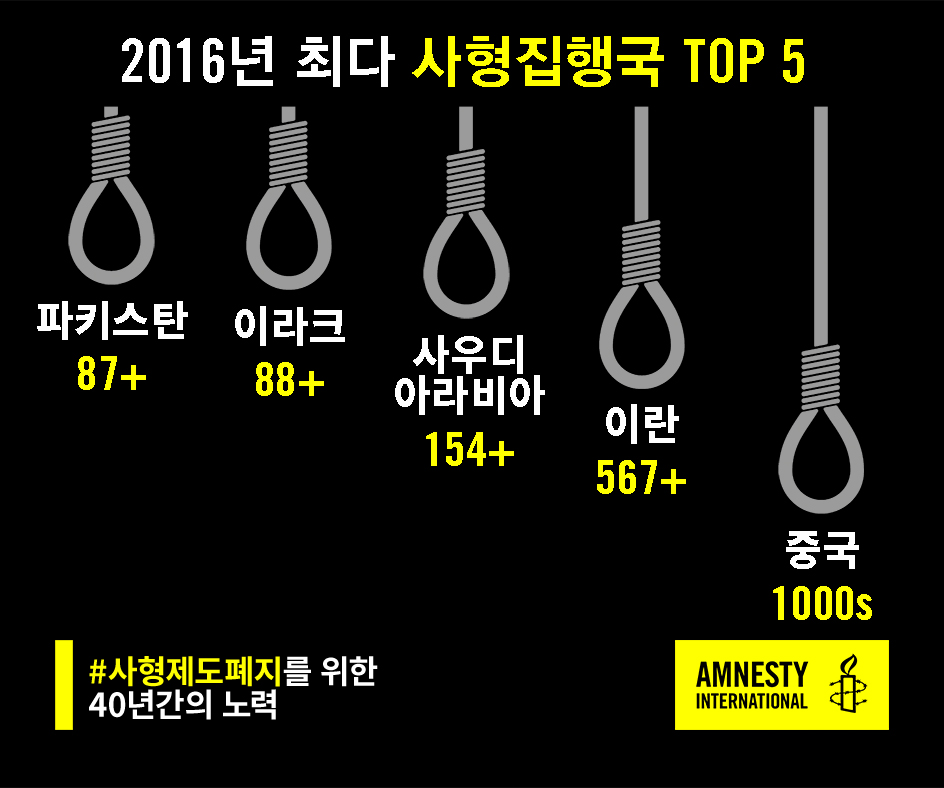 또 “몇 안 되는 국가들이 여전히 대규모 사형 집행을 강행하고 있다. 대다수의 나라는 더 이상 국가가 생명을 빼앗는 것을 용납하지 않는다. 집계된 총 사형집행 건수 중 87%가 단 4개국에서 이루어지고 있는 것을 볼 때, 사형제도는 간신히 버티고 있는 중”이라고 말했다.