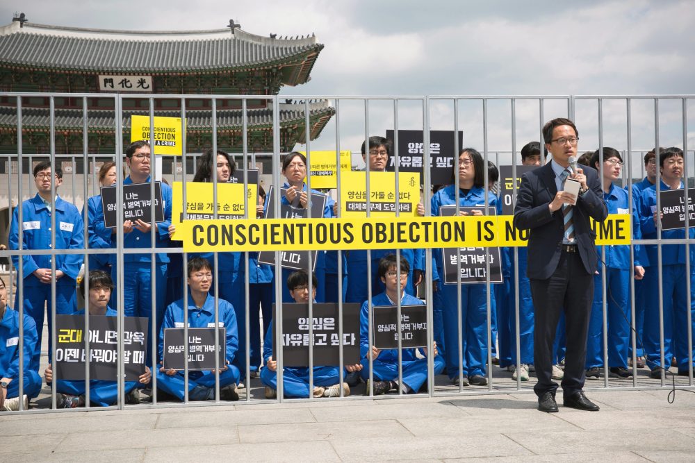 특히 병역거부자의 날인 5월 15일에는 광화문 광장에서 새 정부에 대체복무 도입 공약 이행을 촉구하는 기자회견을 열었습니다. 박주민 국회의원도 이 자리에 참석해 법안 발의를 하겠다는 약속을 했는데, 지난 5월 31일 대체복무제 도입을 위한 법안이 발의가 되었습니다. 화창한 날씨 속에서 열린 기자회견은 양심에 따른 병역거부자로서 수감생활을 했던 당사자들의 참석과 발언으로 의미를 더했습니다.