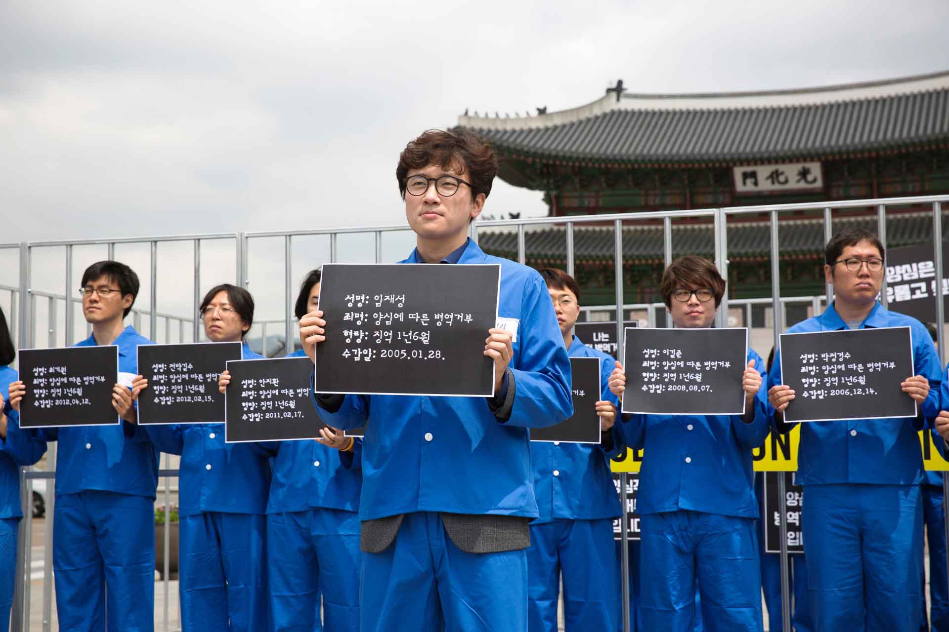 특히 병역거부자의 날인 5월 15일에는 광화문 광장에서 새 정부에 대체복무 도입 공약 이행을 촉구하는 기자회견을 열었습니다. 박주민 국회의원도 이 자리에 참석해 법안 발의를 하겠다는 약속을 했는데, 지난 5월 31일 대체복무제 도입을 위한 법안이 발의가 되었습니다. 화창한 날씨 속에서 열린 기자회견은 양심에 따른 병역거부자로서 수감생활을 했던 당사자들의 참석과 발언으로 의미를 더했습니다.