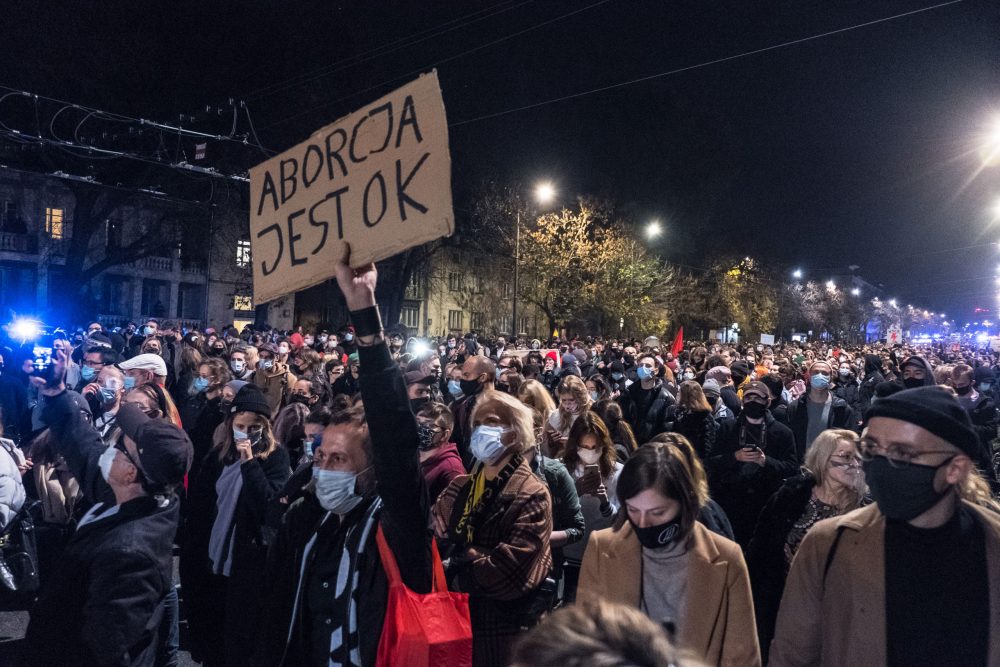 2020년 10월 제한적인 모자보건법 개정에 반대하며 시위를 하는 여성들