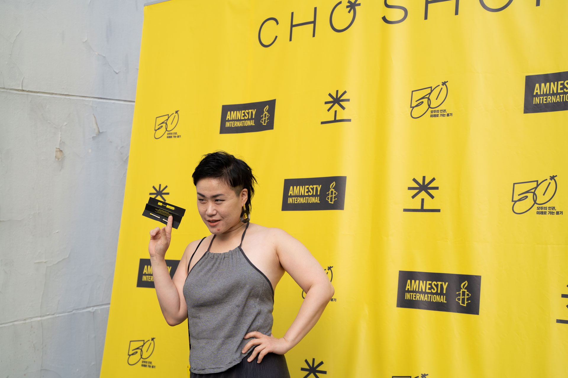 지난 8월 5일 서울 합정동에 위치한 초샵에는 한국지부 50주년을 축하하기 위해 모인 인파로 가득했습니다. 그동안 앰네스티를 위해 함께 목소리를 내어준 다양한 문화, 예술계 인사부터 앰네스티 회원과 지지자분들이 참여해주셨습니다. 임현주 아나운서, 아티스트 이반지하, 아이돌 라이오네시스, 아티스트 소목장세미, 드랙아티스트 지반, 래퍼 슬릭 등 약 80여분이 참여해 자리를 빛내주셨습니다.