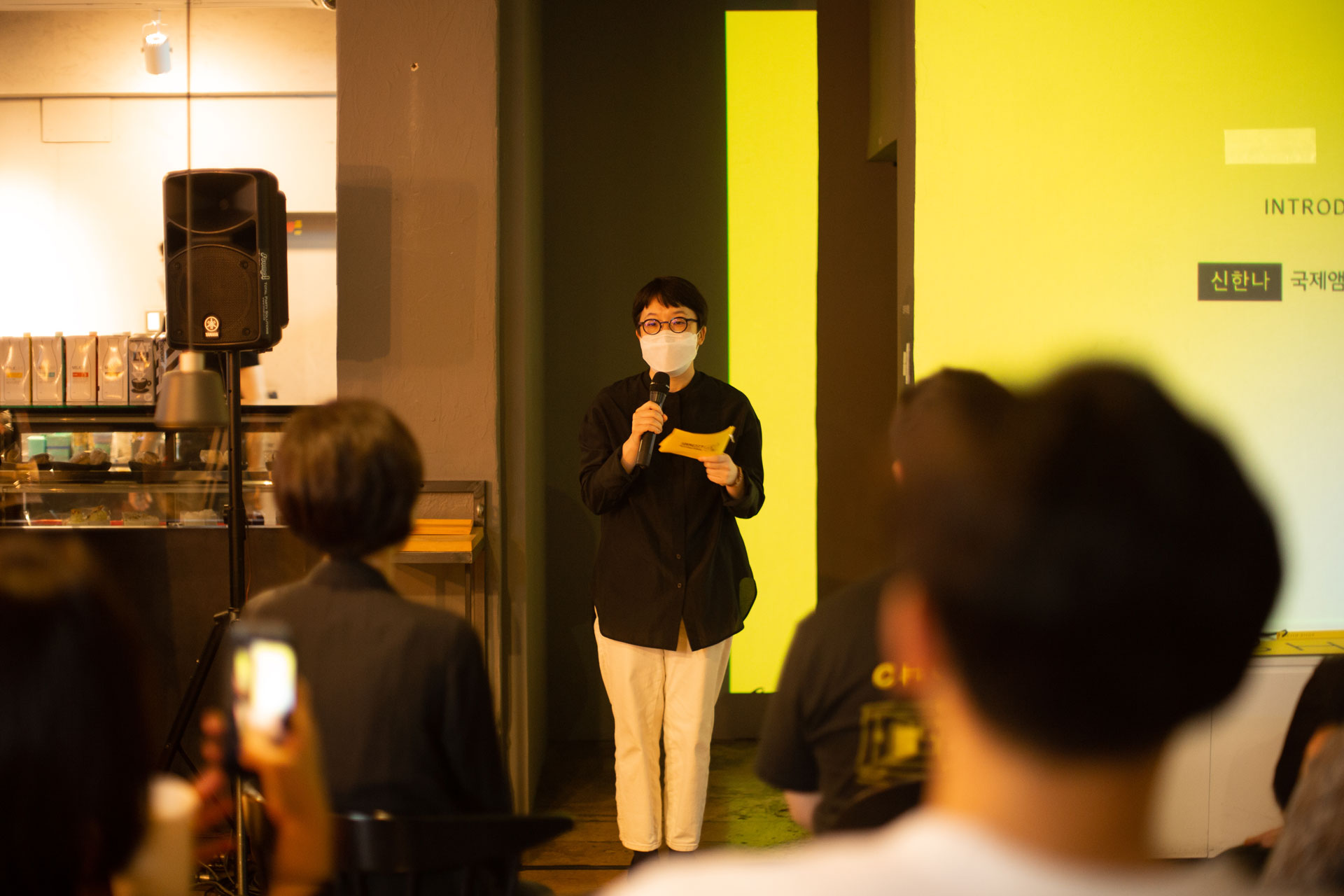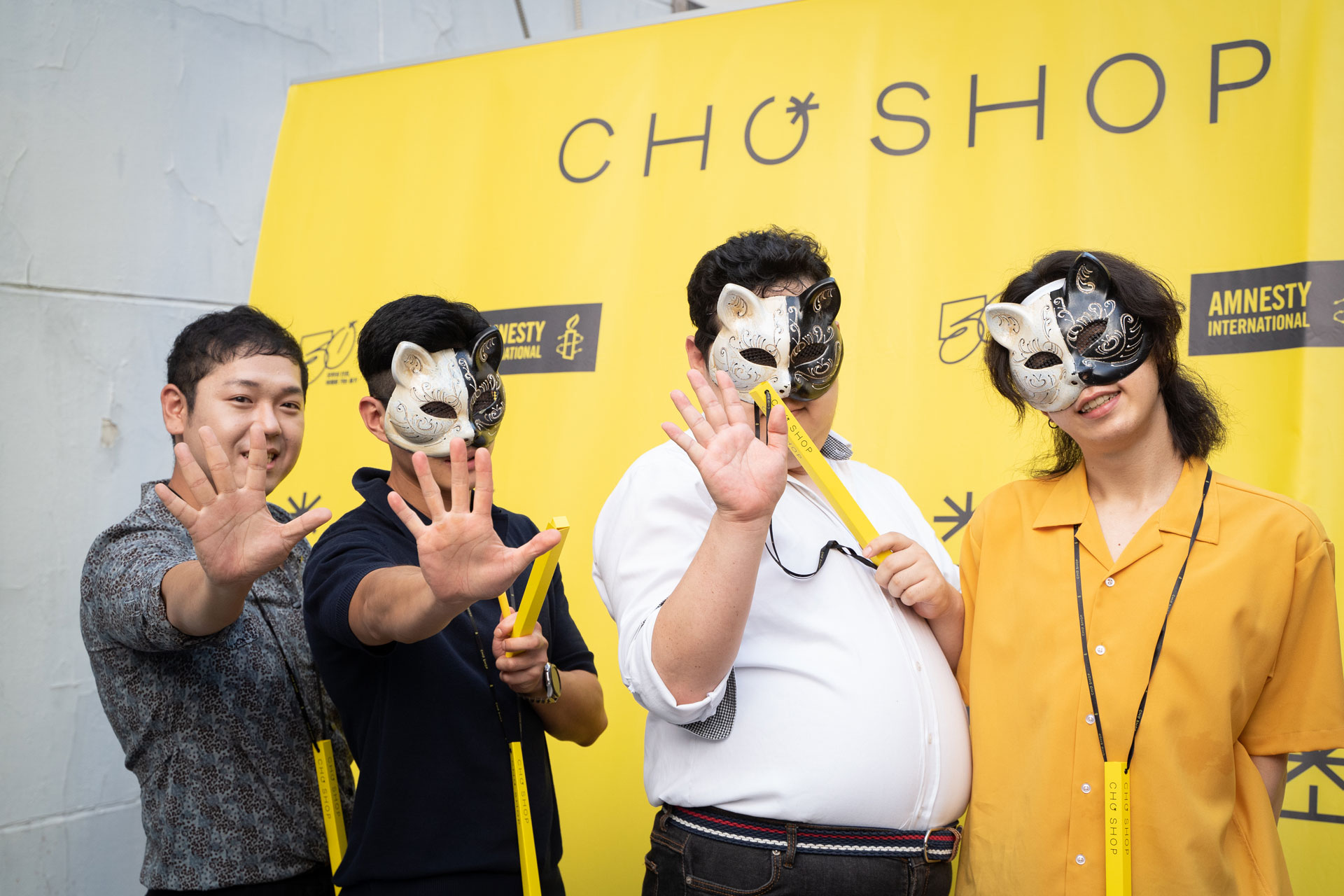 이날 오프닝 행사는 윤지현 국제앰네스티 한국지부 사무처장의 인사말로 시작해, 마음스튜디오 이달우 대표의 초샵 기획의도, 사진 촬영을 포함한 세레머니 등 다채로운 순서로 진행되었으며, 참석자들은 자유롭게 초샵 CHO SHOP을 관람했습니다.