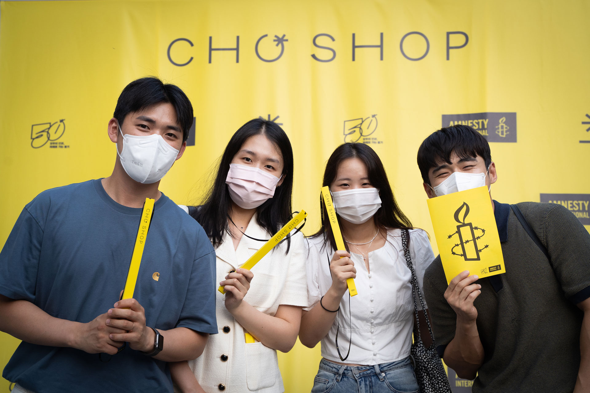초샵 CHO SHOP은 1972년에 창립되어 2022년에 이르기까지 지난 50년간 국내외 인권 문제 해결에 앞장서온 국제앰네스티 한국지부의 지난 역사를 되돌아보고, 앞으로 다가올 새로운 50년을 축하하기 위해 만들었습니다.