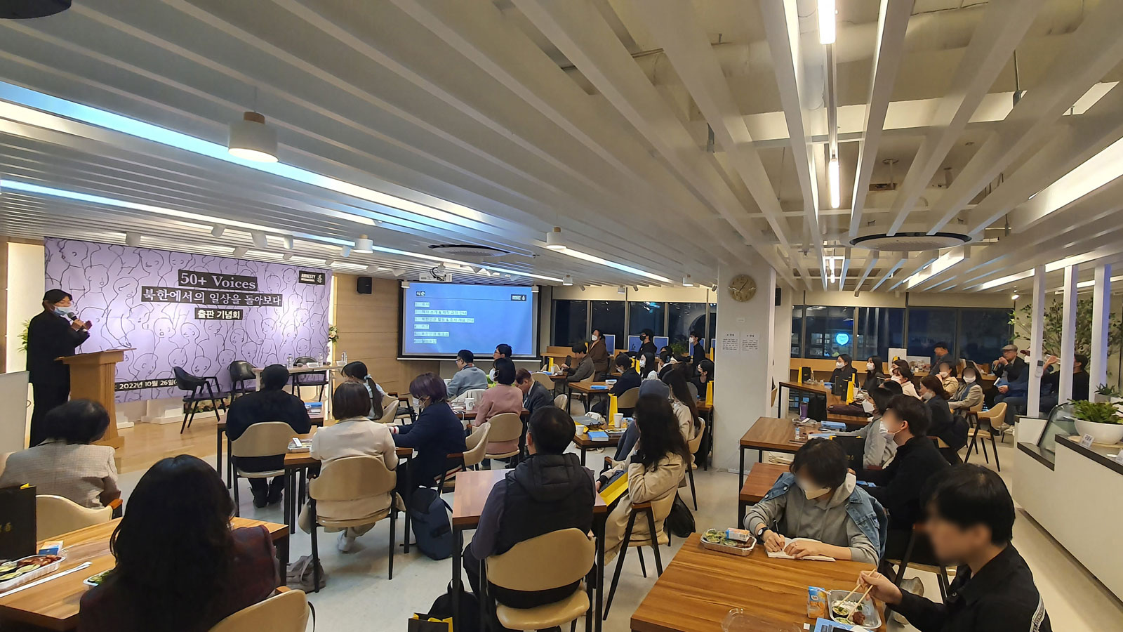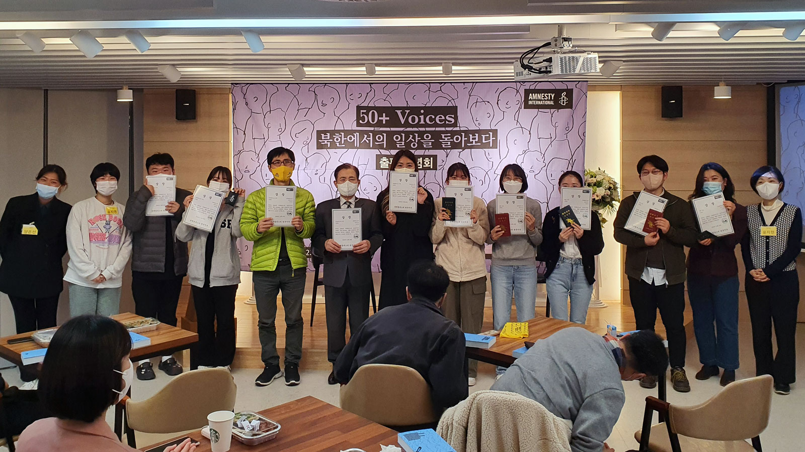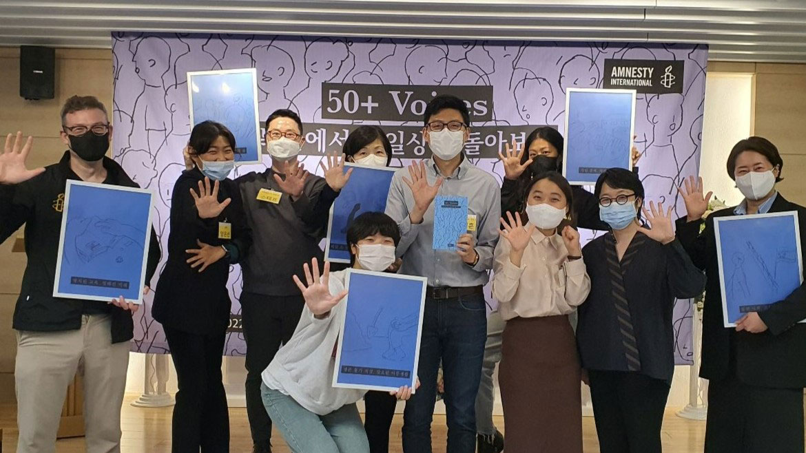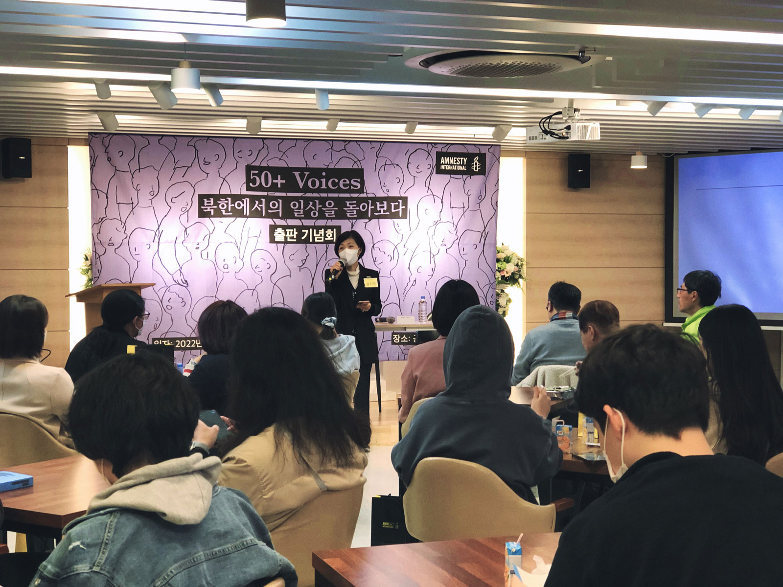 지난 2022년 10월 26일 저녁 7시, 서울 모처에서 국제앰네스티 한국지부(이하 한국지부) 주최로 북한인권 증언집 『50+ Voices』 출판 기념회가 열렸습니다. 이번 출판 기념회는 패널과 참석자 간 소통을 중점에 둔 프로그램 성격 상 최대 50명의 인원에 맞게 애초 기획되었습니다. 그러나 많은 분들이 뜨거운 관심을 보내 주셨고, 신청 초과로 참석 신청이 조기 종료된 후에도 참석 가능 여부를 묻는 문의가 줄을 이었습니다.