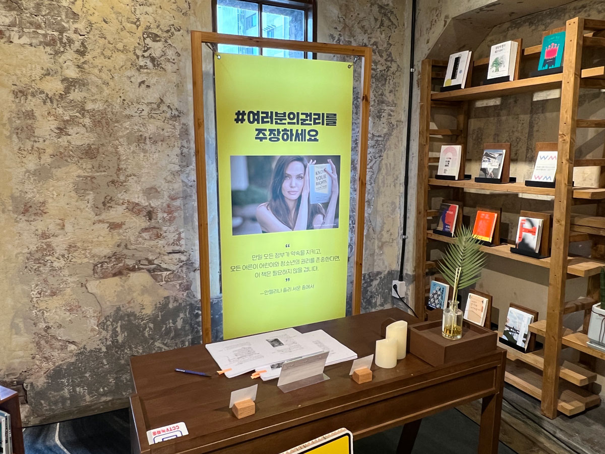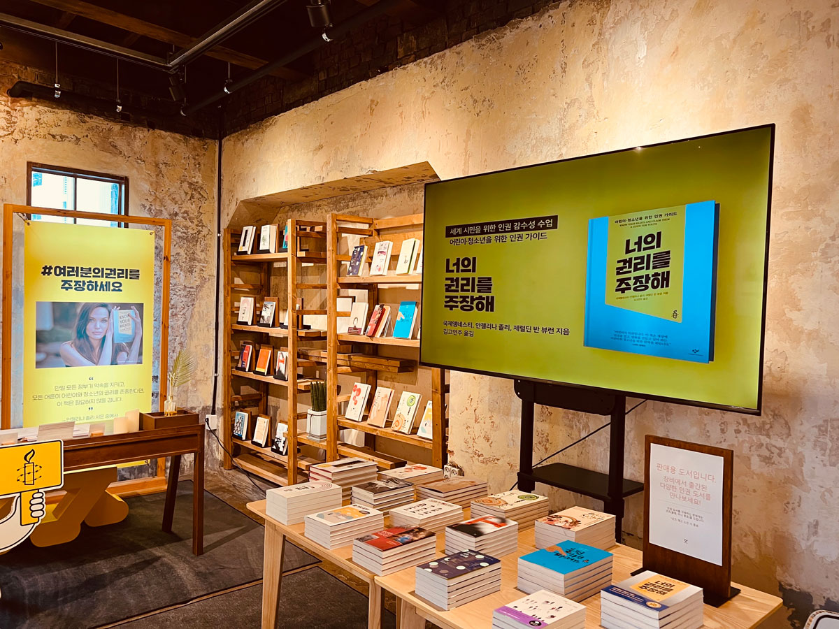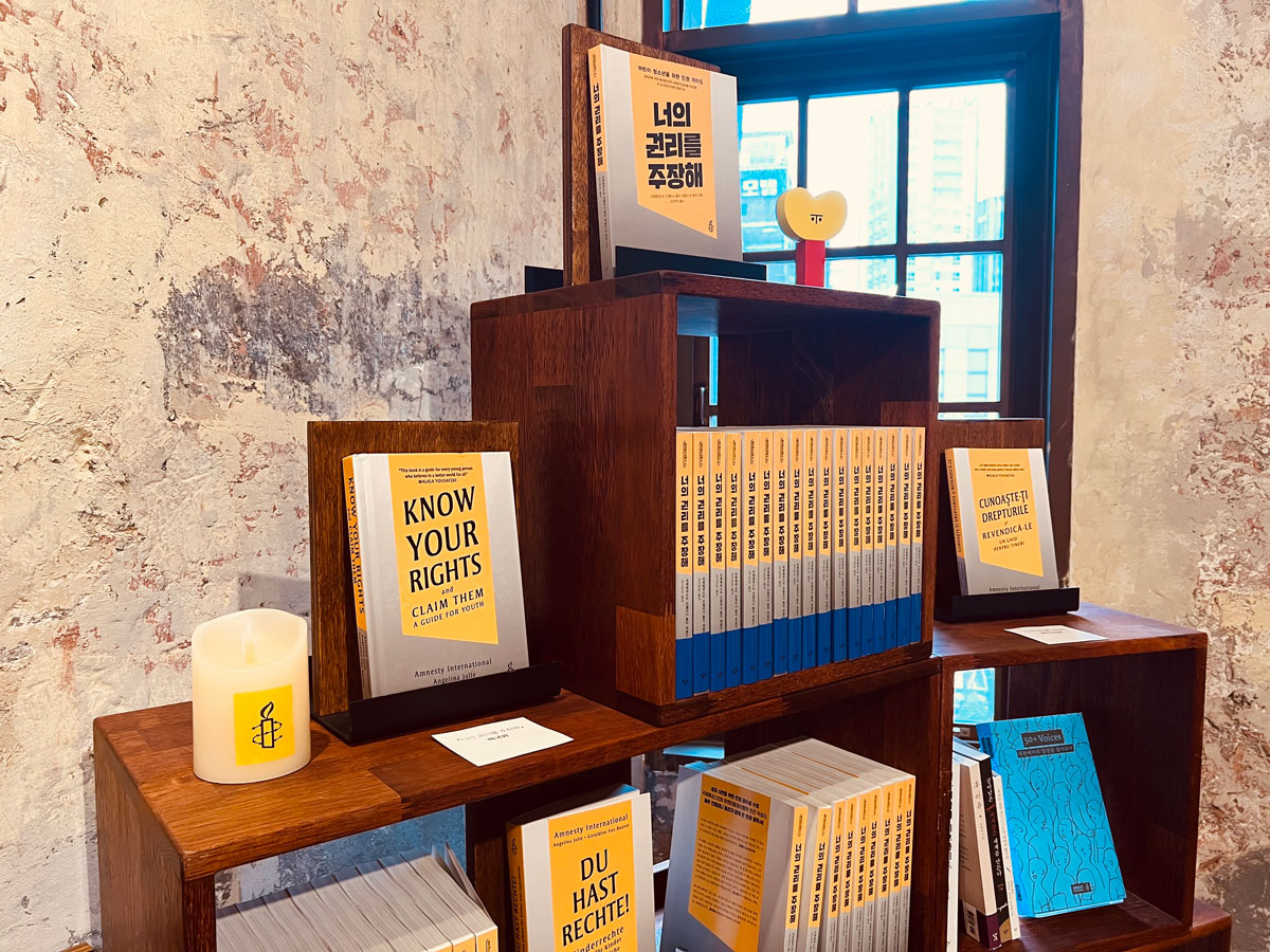 이런 <너의 권리를 주장해>는 어떤 과정을 거쳐서 만들어졌는지 알아보고, 이 책을 쓴 국제앰네스티의 활동을 체험할 수 있는 특별한 공간을 여러분께 소개합니다. 지난 12월 출판사 창비와 함께 서울 창비서교에서 시작해 지난 3월 부산으로 자리를 옮긴 <국제앰네스티 작가의 방>이 바로 그 주인공입니다.