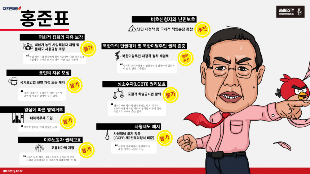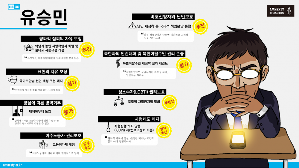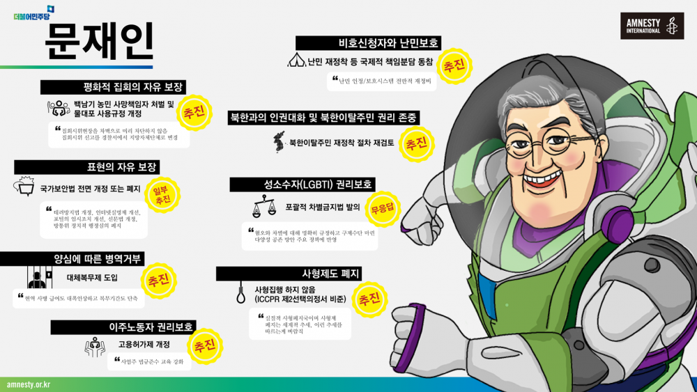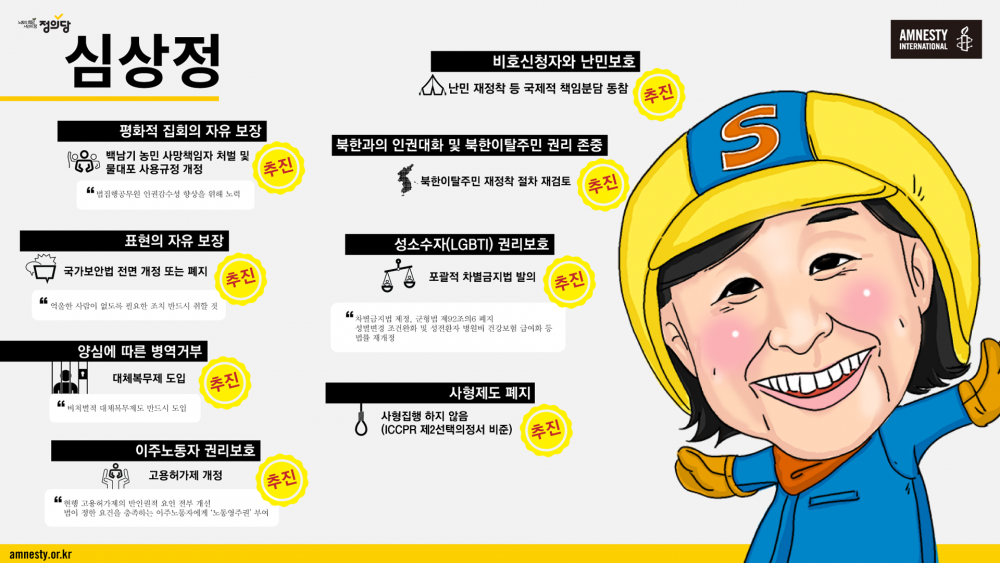 국제앰네스티의 인도주의적 요구에 동의함. 다만 남북의 적대상황과 글로벌 테러리즘을 고려해 일부 제한이 있을 수 있다는 것은 이해되어야 함