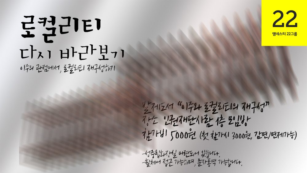 22그룹의 4월 모임에서는 로컬리티와 경계 넘기를 이주의 관점에서 해석해보고자 합니다.